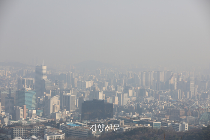 전국이 대체로 흐린 날씨를 보였던 지난 26일 오전 서울 중구 남산타워 전망대에서 내려다 본 서울 시내가 뿌옇다. 이날 기상청은 수도권과 충청, 호남 등 서쪽 지방은 미세먼지와 초미세먼지 농도가 ‘나쁨’ 수준으로 예측된다고 밝혔다. 2023.12.26. 정효진 기자 |