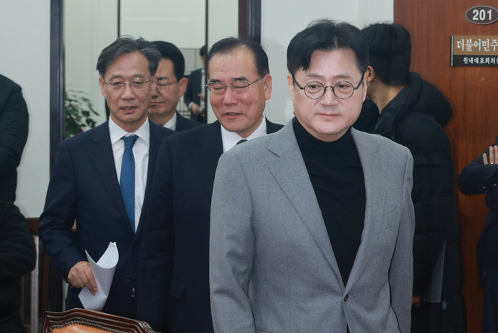 홍익표 더불어민주당 원내대표가 28일 오전 서울 여의도 국회에서 열린 정책조정회의에 참석하고 있다. 연합뉴스 |