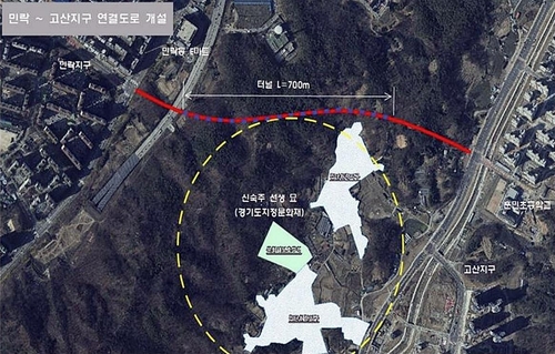 4일 더불어민주당 김민철(의정부을) 의원과 의정부시에 따르면 민락∼고산 연결도로는 부용산 터널 700m를 포함해 길이 1.2㎞, 폭 20m로 개설된다. 총사업비는 556원으로 추산됐다.