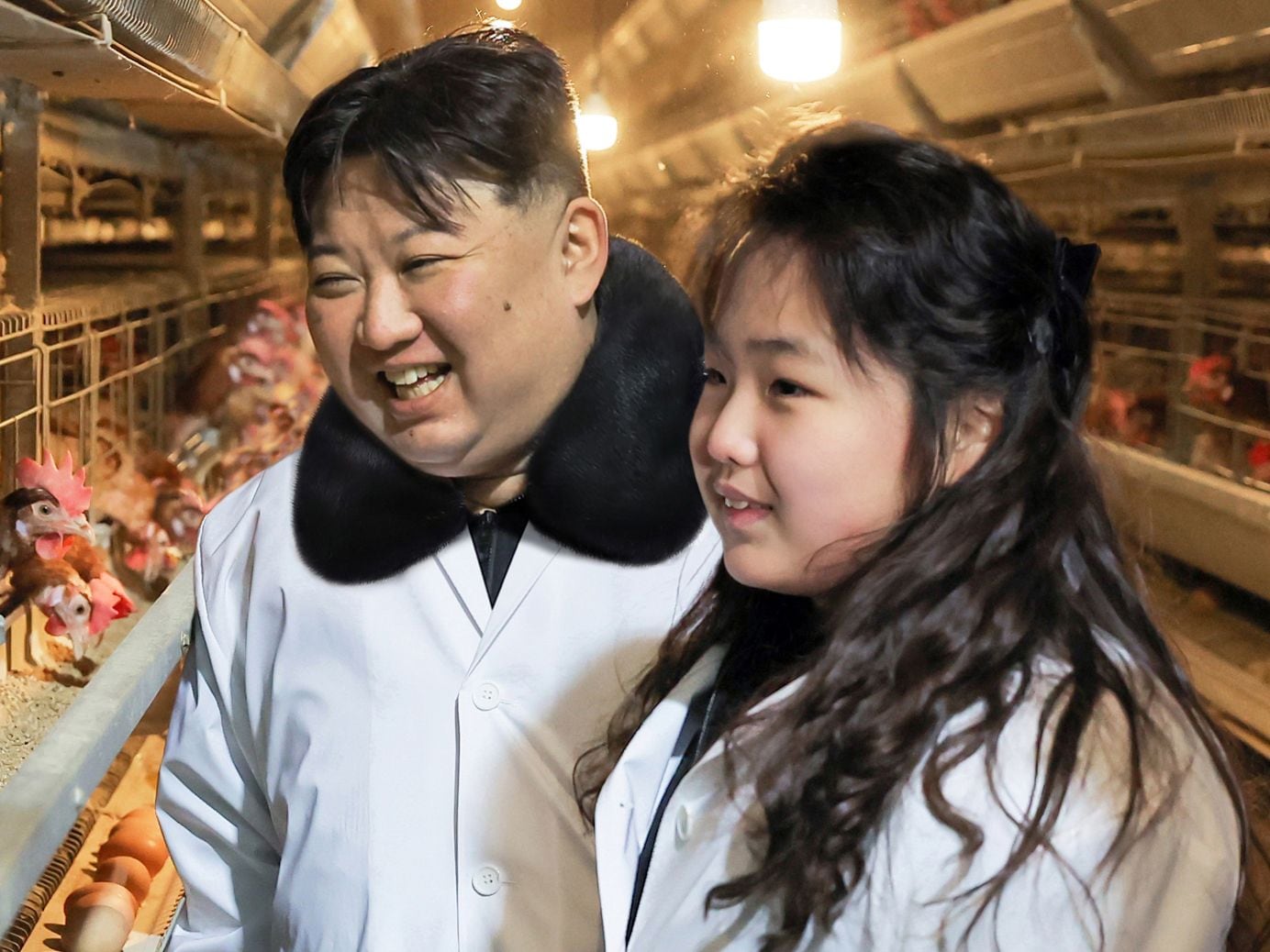 김정은이 지난 7일 딸 주애와 함께 황해북도 황주군 광천닭공장을 방문한 모습. /조선중앙통신 연합뉴스 |