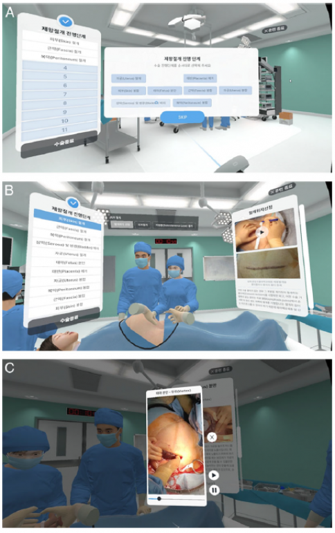 임상시험 참가자들이 체험한 VR 프로그램은 흔히 겪을 수 있는 임상 상황인 만삭에 조기에 조기양막파수로 병원을 방문한 환자에 대한 기본적인 문진과 검진으로 시작된다. 이때 사용자는 끊임없이 주어진 상황에서 적절한 대응을 선택해야 한다. 제왕절개술을 결정하고 나면 실제 수술장 환경과 같게 세팅한 공간에서 직접 집도의의 위치와 시선으로 수술을 순서대로 수행하게 되며 이때에도 다양한 팝업을 통해 다음 술기에 대한 숙지 정도를 평가받는다.