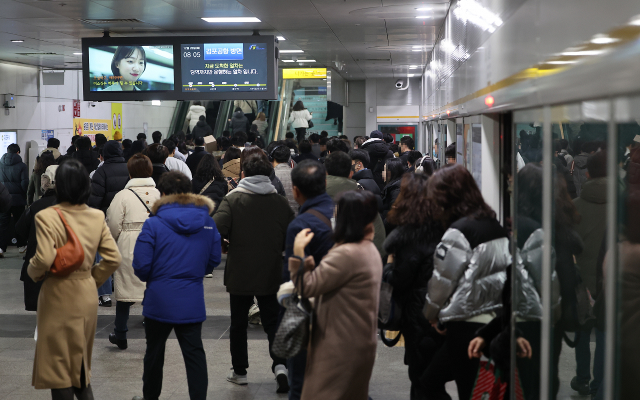 혼잡한 김포골드라인 김포공항역 모습. [연합] |
