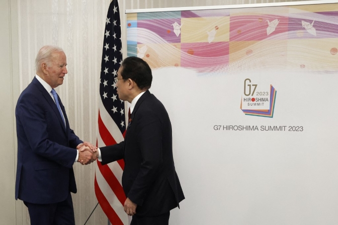 조 바이든 미국 대통령(왼쪽)과 기시다 후미오 일본 총리가 악수를 나누는 모습/AFPBBNews=뉴스1 |