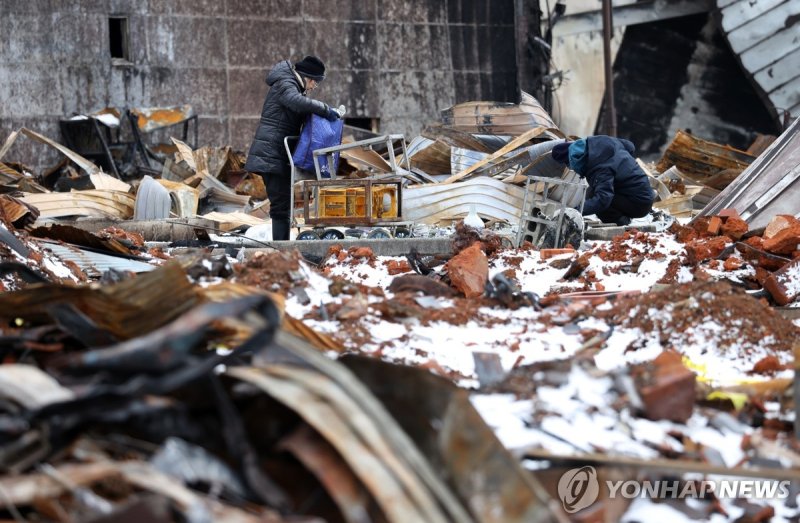 진도 7.6의 강진이 발생한 일본 노토반도에서 주민들이 자재를 수습하고 있다. 연합뉴스 |