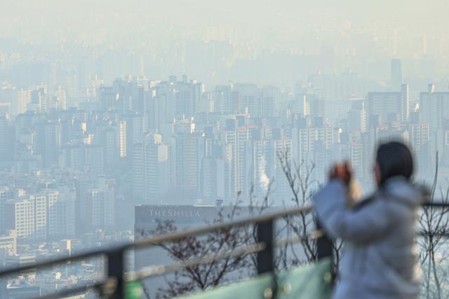 서울을 비롯한 수도권의 초미세먼지 농도가 나쁨 수준을 보인 31일 오전 서울 중구 남산에서 바라본 도심이 뿌옇게 흐린 모습을 나타내고 있다. 뉴스1 |