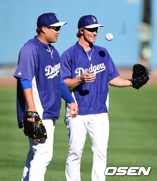 LA 다저스 시절 류현진과 잭 그레인키. /OSEN DB |