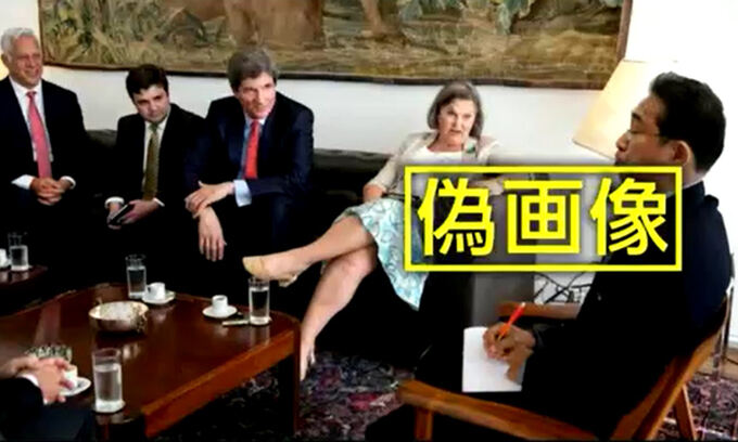 해당 사진은 2022년 4월 미국 정부 고위관계자들이 브라질 외무장관과 만났을 때에 찍은 것으로 브라질 외무장관을 기시다 총리로 바꿔 놓았다. NHK는 “손가락 모양이 부자연스럽고 배경 일부도 뒤틀려 있다”고 전했다.