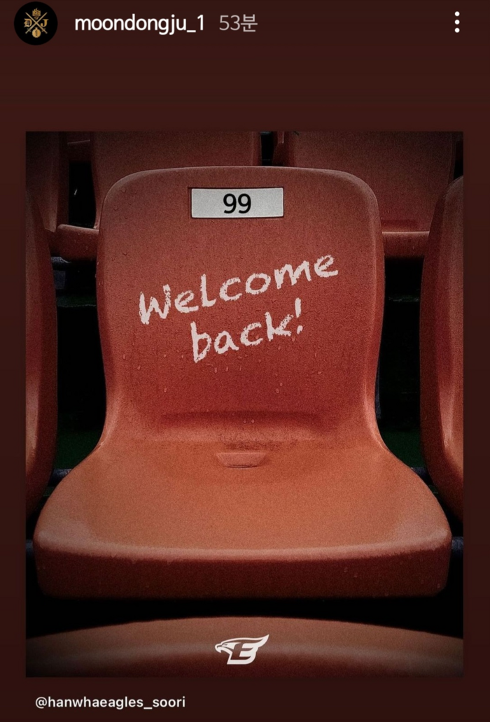 문동주는 한화이글스 공식 계정에 올라온 류현진의 등번호 ‘99번’이 적힌 의자 사진을 올리며 환영했고, 노시환은 한술 더 떠 ‘2024 한화 1군 선수단’ 단체톡방 대화 내용 일부를 올리며 “킹 이즈 백(King is back·왕의 귀환)”이라고 칭송했다.