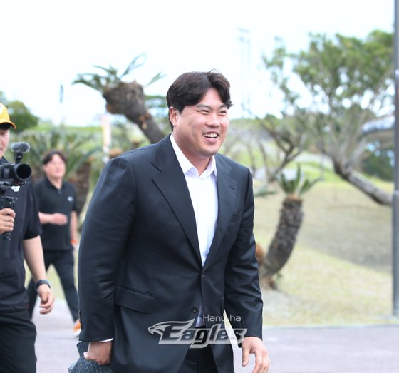 최원호 감독의 미소가 번졌다. 드디어 한화 이글스 선수단에 합류한 류현진(37)이 일본 오키나와 전지훈련지에 합류해 불펜피칭까지 소화했다.