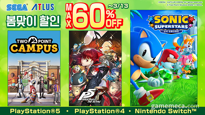 세가는 플레이스테이션(이하 PS) 스토어와 닌텐도 e숍에서 판매 중인 일부 PS5, PS4, 닌텐도 스위치 용 타이틀을 기간 한정으로 특별 가격에 판매하는 세가 봄맞이 할인을 개최한다.
