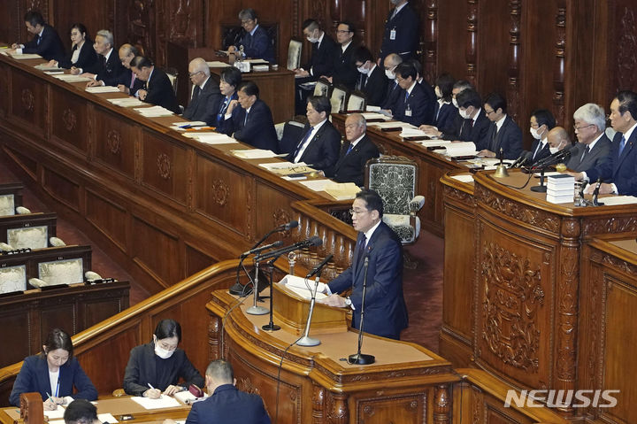 [도쿄=AP/뉴시스]기시다 후미오(岸田文雄) 일본 총리가 지난달 30일 국회에서 시정 방침 연설을 하고 있다. 일본 중의원 정치윤리심의위가 기시다 총리 등의 요청에 따라 29일과 3월1일 심사회를 개최하기로 결정했다고 NHK가 28일 보했다. 2024.02.28. |