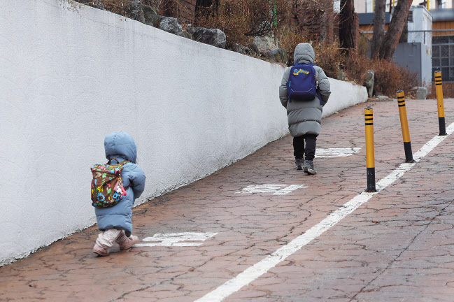 서울 한 초등학교에서 학생들이 돌봄교실에 참여하기 위해 들어서고 있다. [연합] |