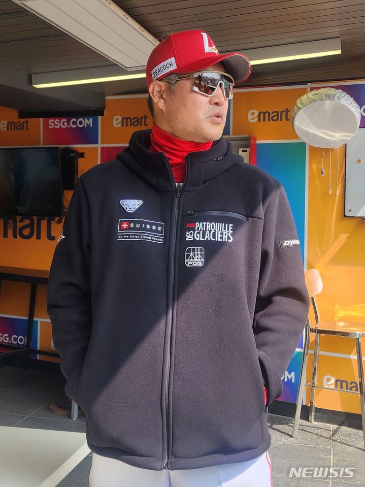 [인천=뉴시스] 김희준 기자 = 이숭용 SSG 랜더스 감독이 23일 인천 SSG랜더스필드에서 벌어진 롯데 자이언츠와의 2024시즌 개막전을 앞두고 취재진과 이야기를 나누고 있다. 2024.03.23jinxijun@newsis.com |