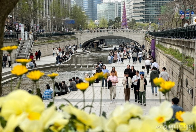서울 낮 기온이 23도까지 오르는 등 평년보다 따뜻한 날씨를 보인 8일 서울 청계천에서 점심시간 직장인 및 관광객들이 산책을 하고 있다. 2024.4.8/사진=뉴스1 Copyright (C) 뉴스1. All rights reserved. 무단 전재 및 재배포, AI학습 이용 금지. |