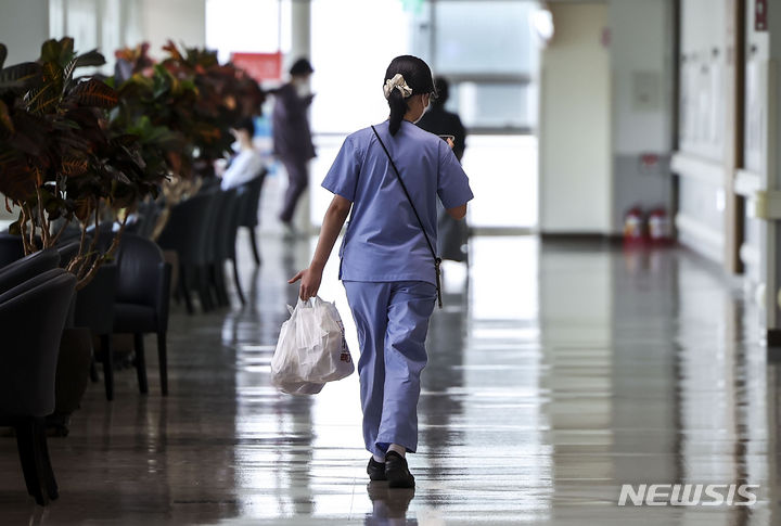 [서울=뉴시스] 정병혁 기자 = 서울시내 대학병원에서 의료진이 이동하고 있다. 2024.04.21. jhope@newsis.com |