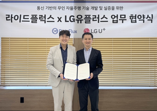 (서울=연합뉴스) 김현수 기자 = LG유플러스는 자율주행 스타트업 라이드플럭스와 무인 자율주행 기술 개발을 위한 업무협약(MOU)을 체결했다고 28일 밝혔다.