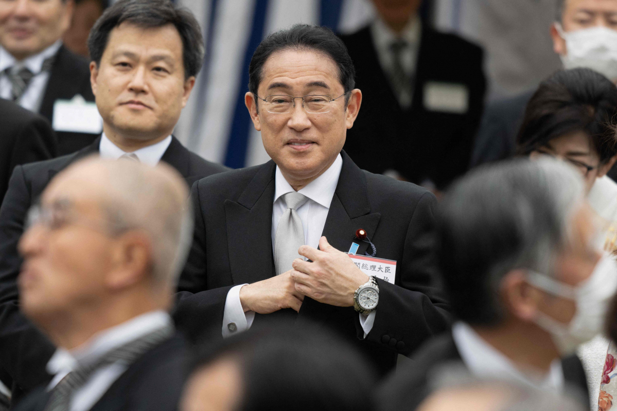 기시다 후미오 일본 총리가 23일(현지시간) 도쿄 아카사카 황궁 황실 정원에서 열린 봄 정권 파티에 참석하고 있다. 도쿄(일본)/AFP연합뉴스 |