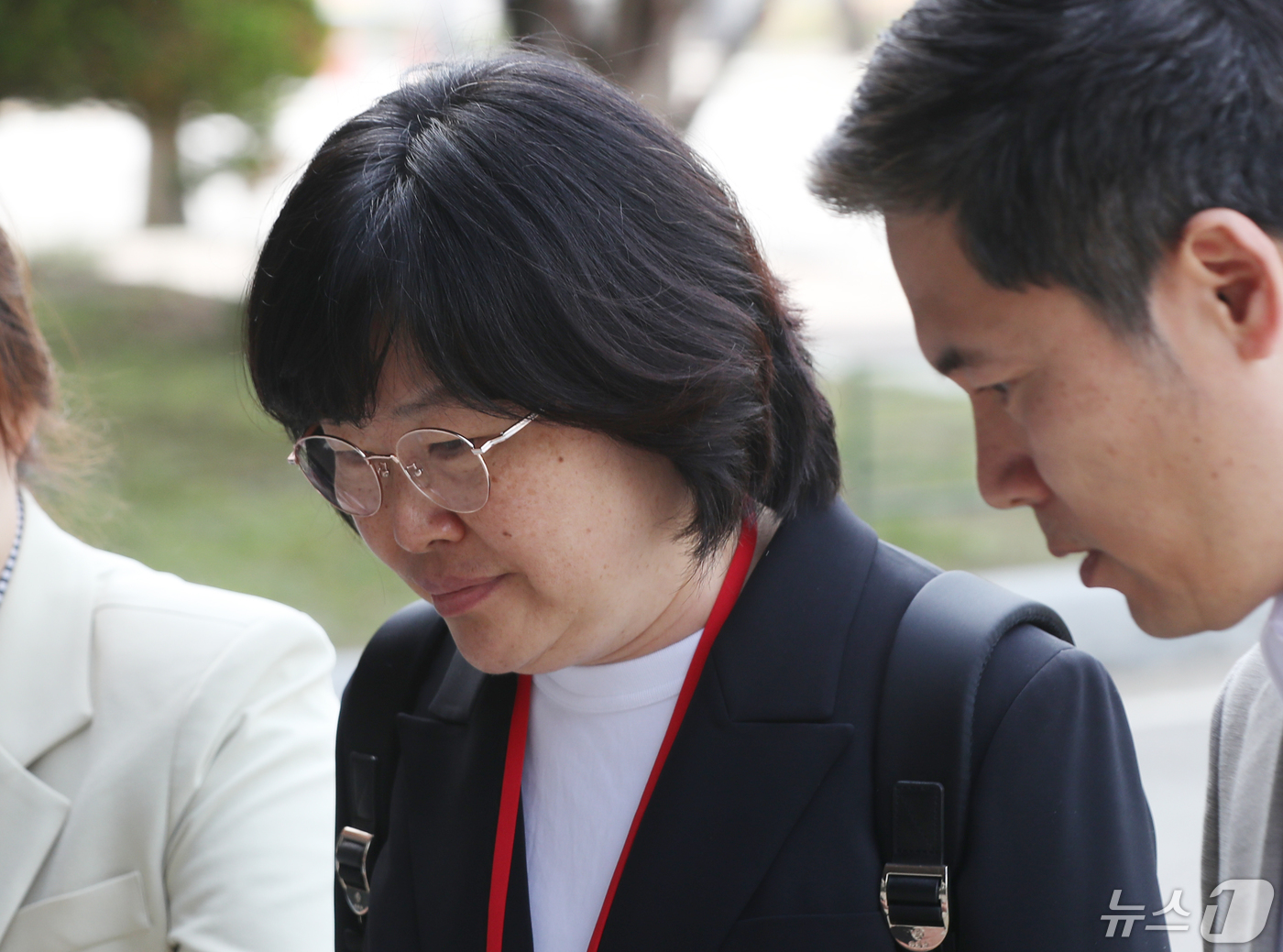 (과천=뉴스1) 김영운 기자 = 유재은 국방부 법무관리관이 29일 오전 '해병대 채 상병 사망사건 수사 외압 의혹' 관련 소환조사를 받기위해 경기 과천시 고위공직자범죄수사처(공수처)에 출석하고 있다. 2024.4.29/뉴스1