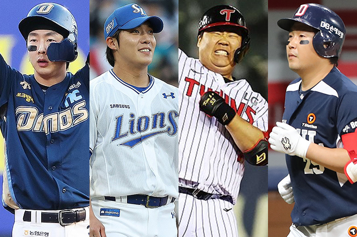 왼쪽부터 NC 박건우, 삼성 원태인, LG 김범석, 두산 양의지. 연합뉴스 |