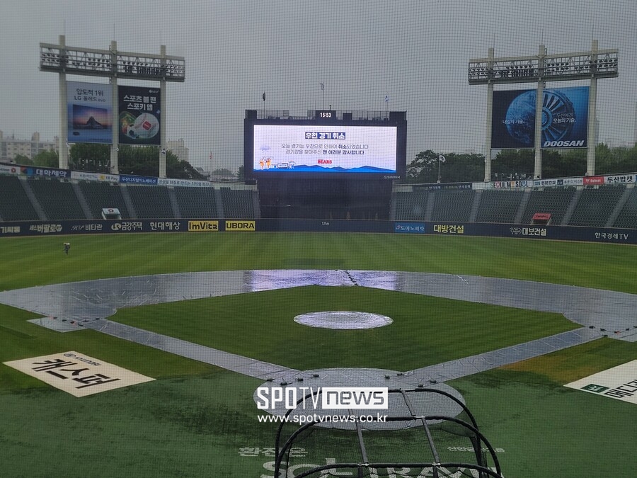 이날 수도권에는 오후부터 밤 늦게까지 비 예보가 있었고 많은 양의 비가 잠실, 인천, 수원의 그라운드를 적셨다.