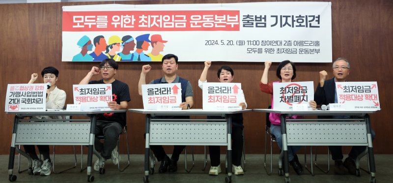 아울러 운동본부는 "이 사회에 일하며 살아가는 모두를 위한 최저임금을 만들어가기 위해 투쟁하겠다"며 "앞으로 기자회견과 토론회 등을 개최하며 최저임금 인상과 최저임금의 업종별 차등 적용이 가능하게 돼 있는 최저임금법 개정을 요구할 것"이라고 덧붙였다.