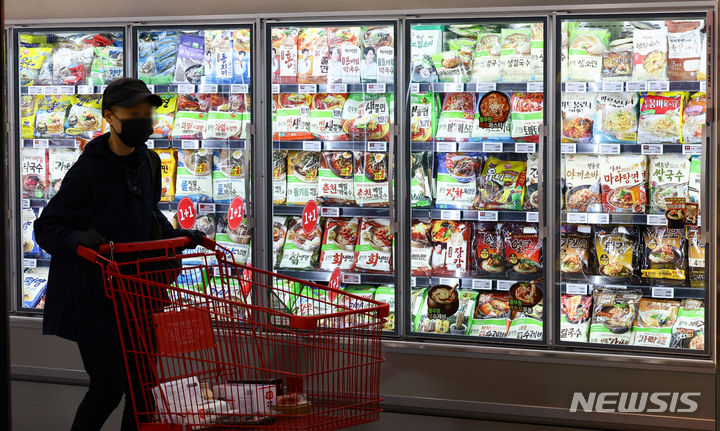 [서울=뉴시스] 황준선 기자 = 높은 외식물가 영향으로 내식 소비가 늘고 해외에서 K-푸드가 인기를 끌며 국내 식품기업들이 올해 1분기 호전된 실적을 거뒀다. 기업별로는 CJ제일제당이 49%, 삼양식품은 235%, 롯데웰푸드는 101%, 대상은 92% 등 영업이익이 증가 했다. 사진은 17일 서울 시내 한 대형마트 식품 매대 모습. 2024.05.17. hwang@newsis.com |