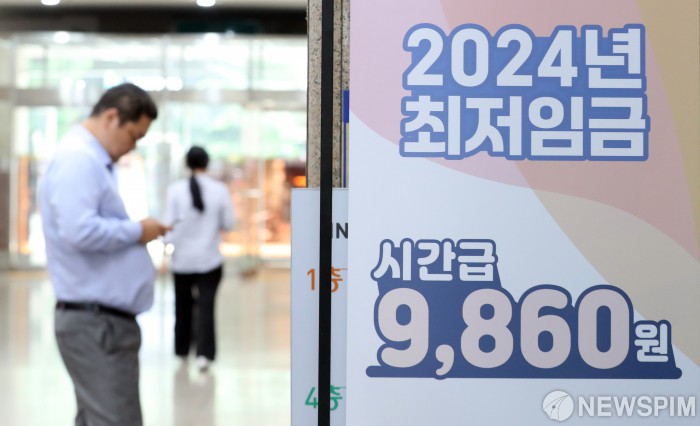 [서울=뉴스핌] 최지환 기자 = 2025년도 최저임금 심의를 위한 1차 전원회의가 열린 21일 서울 마포구 서부고용복지플러스센터에 2024년도 최저임금 안내문이 게시돼 있다. 올해는 한국은행의 돌봄 업종에 대해 최저임금을 낮추는 방안을 담은 보고서로 촉발된 '최저임금 차등적용' 문제와 '최저임금 1만원 돌파' 문제로 노사간 치열한 접점이 벌어질 것으로 예상된다. 2024.05.21 choipix16@newspim.com