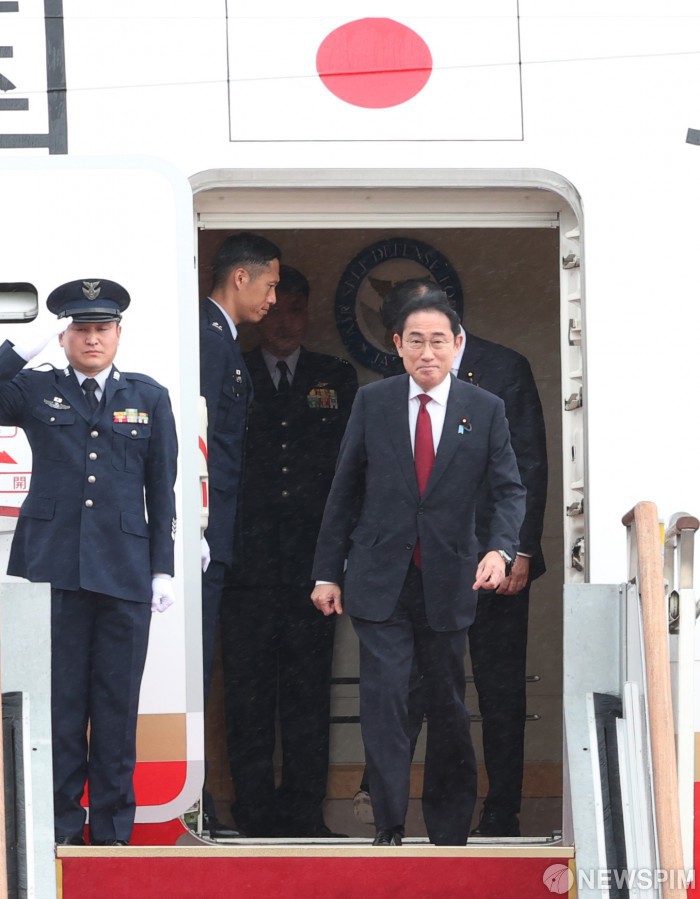 [성남=뉴스핌] 이호형 기자 = ‘한중일 정상회담’ 차 입국한 일본 기시다 총리가 26일 오후 성남 서울공항에 도착하고 있다. 2024.05.26 leemario@newspim.com