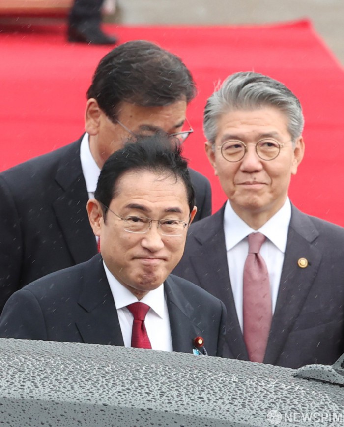 [성남=뉴스핌] 이호형 기자 = ‘한중일 정상회담’ 차 입국한 일본 기시다 총리가 26일 성남 서울공항서 김홍균 외교부 제1차관의 배웅을 받으며 차량에 오르고 있다. 2024.05.26 leemario@newspim.com |