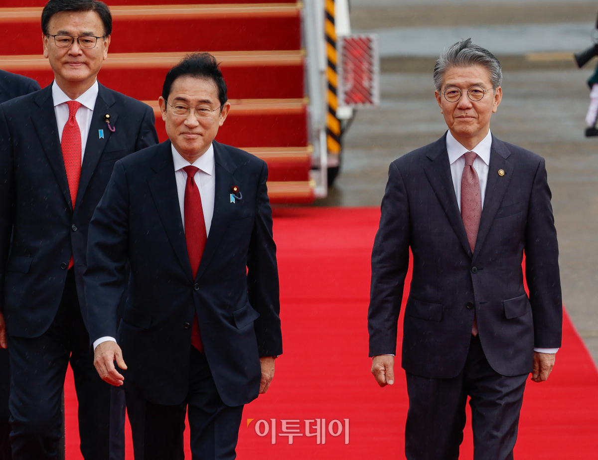 외교가에 따르면 기시다 총리는 이날 오후 경기도 성남 서울공항에 도착했다. 기시다 총리는 이날 오후 윤석열 대통령과 한일 정상회담을 진행한 후 리창 중국 총리와 양자 회담을 가질 예정이다.