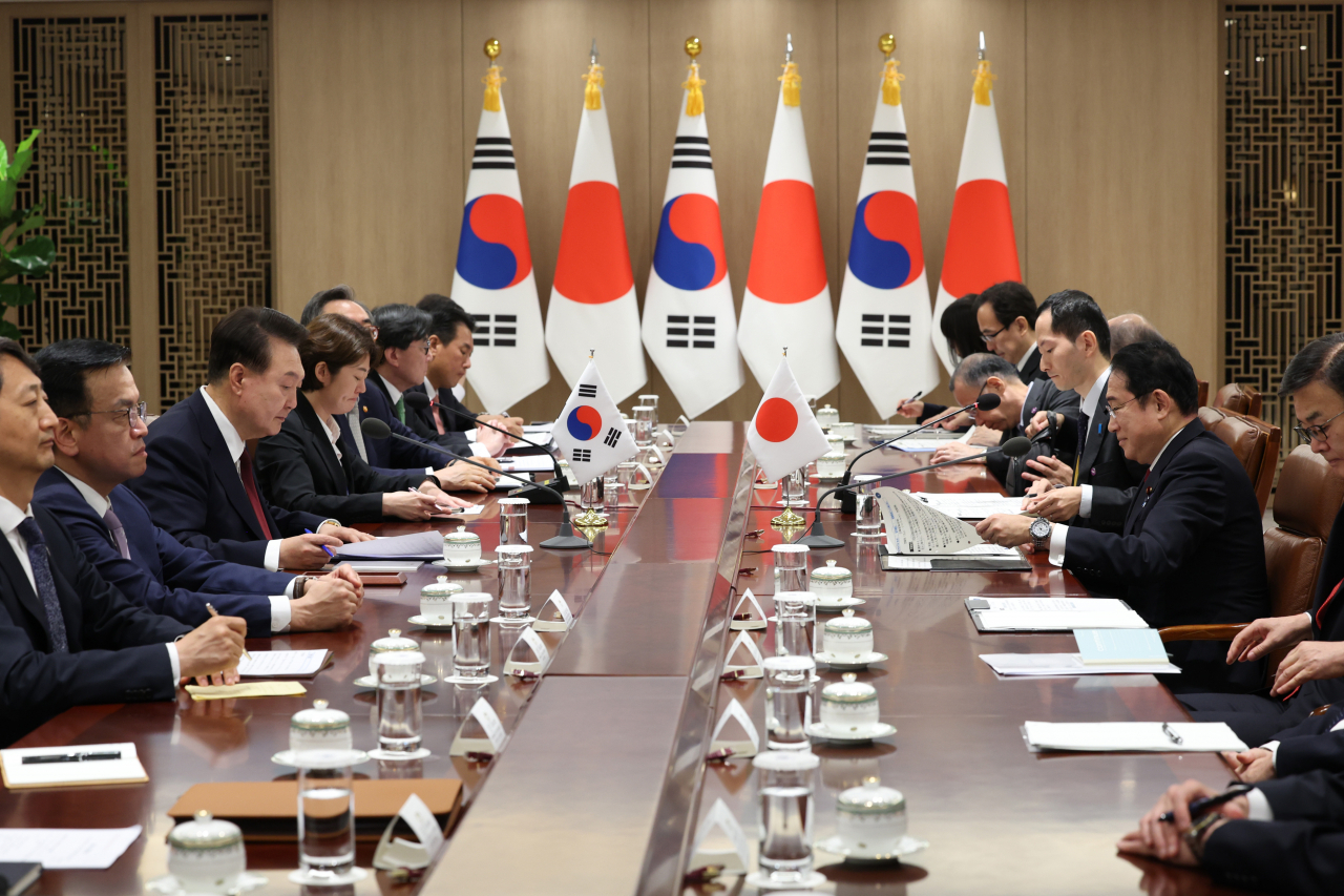 윤 대통령은 이날 기시다 총리와의 회담에서 “우리 두 사람의 견고한 신뢰를 기반으로 지난 한 해 동안 각계 각급에서 교류가 크게 증진됐다”며 “작년 3월 도쿄, 그리고 작년 7월 리투아니아 빌뉴스에서 우리 두 사람이 합의한 대로 정부 간 합의체가 모두 복원됐다”고 평가했다.