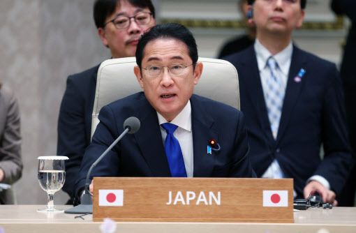 기시다 후미오 일본 총리가 27일 청와대 영빈관에서 열린 제9차 한일중 정상회의에서 발언하고 있다. (사진=연합뉴스) |