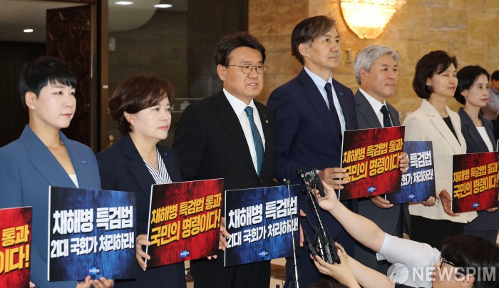 [서울=뉴스핌] 이형석 기자 = 황운하 조국혁신당 원내대표가 28일 오후 서울 여의도 국회에서 채해병 특검법 재의결 가결 촉구 발언을 하고 있다. 2024.05.28 leehs@newspim.com
