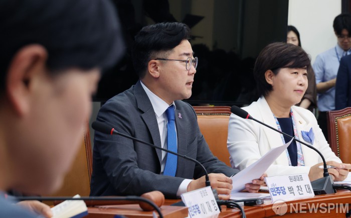 [서울=뉴스핌] 이형석 기자 = 박찬대 더불어민주당 원내대표가 29일 오전 서울 여의도 국회에서 열린 최고위원회의에서 모두발언을 하고 있다. 2024.05.29 leehs@newspim.com
