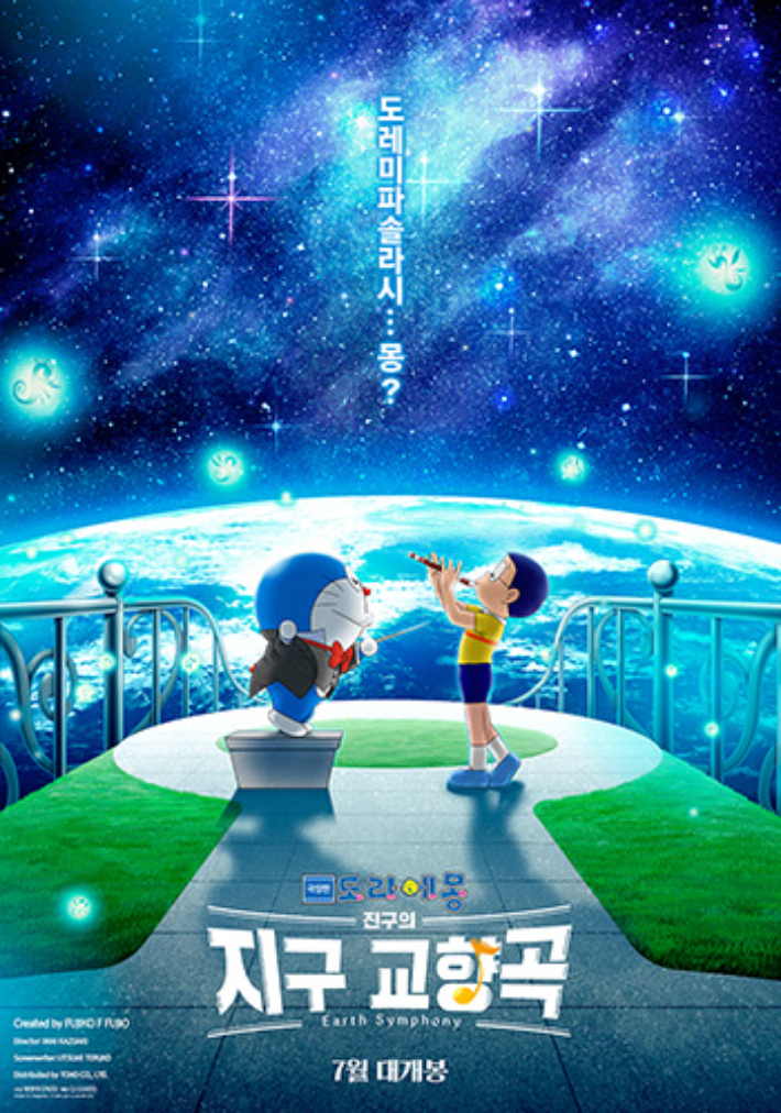이번에 공개된 런칭 포스터는 지구가 내려다보이는 우주를 배경으로 지휘하는 도라에몽과 리코더를 불고 있는 진구의 모습이 담겨 눈길을 끈다. 별빛이 가득한 우주 속에 '도레미파솔라시…몽?'이라는 카피가 도라에몽이 들려줄 멜로디 어드벤처를 예고하며 기대감을 고조시킨다.