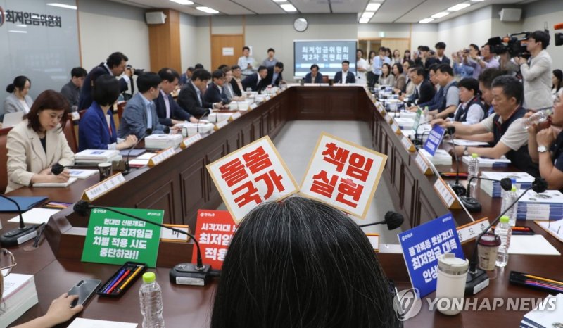 반면 근로자 측 류기섭 한국노총 사무총장은 "최저임금 심의 법정시한이 한 달도 채 남지 않은 상황에서 업종별 차별 적용처럼 사회 갈등만 유발하는 논의는 걷어내고 제도 취지에 맞는 심의가 이뤄지길 바란다"며 "올해는 반드시 최저임금이 노동자 가구가 살아갈 수 있는 수준으로 대폭 인상돼야 한다"고 맞섰다.