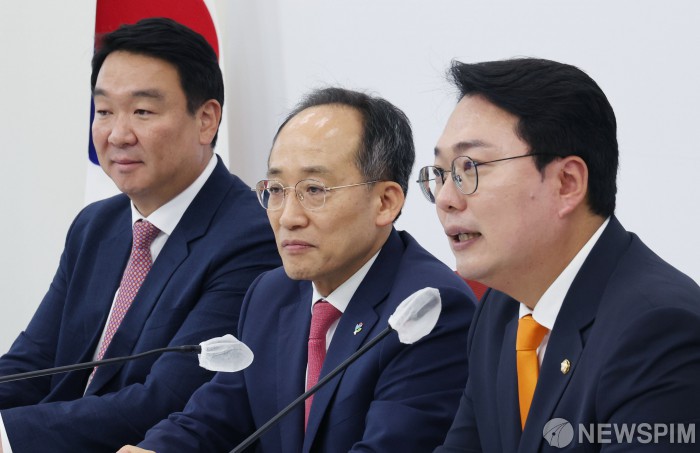 [서울=뉴스핌] 이형석 기자 = 천하람 개혁신당 원내대표가 4일 오후 서울 여의도 국회에서 추경호 국민의힘 원내대표를 만나 대화를 나누고 있다. 2024.06.04 leehs@newspim.com