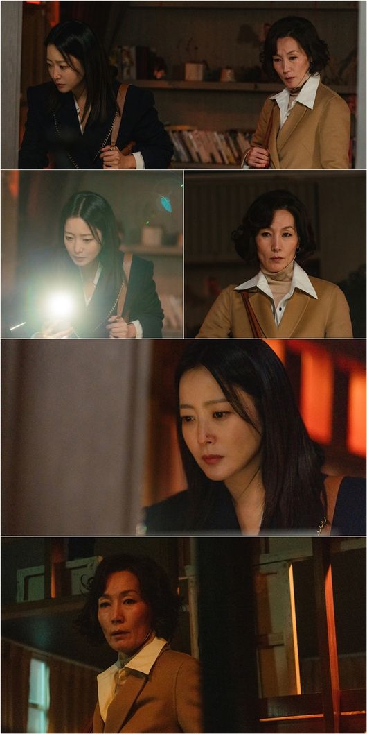 이와 관련 8일(오늘) 방송될 6회에서는 갈등의 조짐을 보였던 김희선과 이혜영이 의문의 붉은 벽돌집을 찾아가 사생결단 추리력을 풀가동시키는 ‘불길한 공조’ 현장이 포착돼 이목을 집중시킨다. 극 중 노영원과 홍사강이 어두컴컴한 장소를 핸드폰 플래시로 이리저리 비추며 탐색을 하는 장면. 노영원은 동공을 크게 확장한 채 꼼꼼하게 살펴보고 홍사강은 집요한 눈빛을 번뜩이며 단서 찾기에 매진한다.