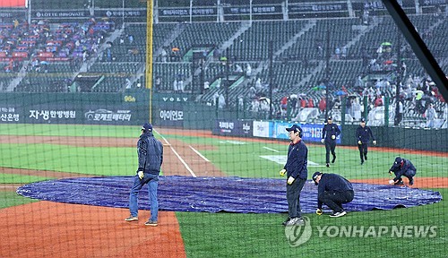 (서울=연합뉴스) 장현구 기자 = 8일 오후 5시 부산 사직구장에서 열릴 예정이던 프로야구 SSG 랜더스와 롯데 자이언츠의 경기가 비로 취소됐다.