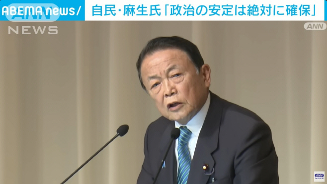 자민당 2인자 아소 부총재, 정치자금법 개정안 두고 쓴소리