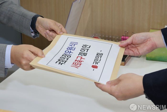 [서울=뉴스핌] 이형석 기자 = 조지연 국민의힘 의원이 11일 오전 서울 여의도 국회 의안과에서 우원식 국회의장 사퇴촉구 결의안을 제출하고 있다. 2024.06.11 leehs@newspim.com