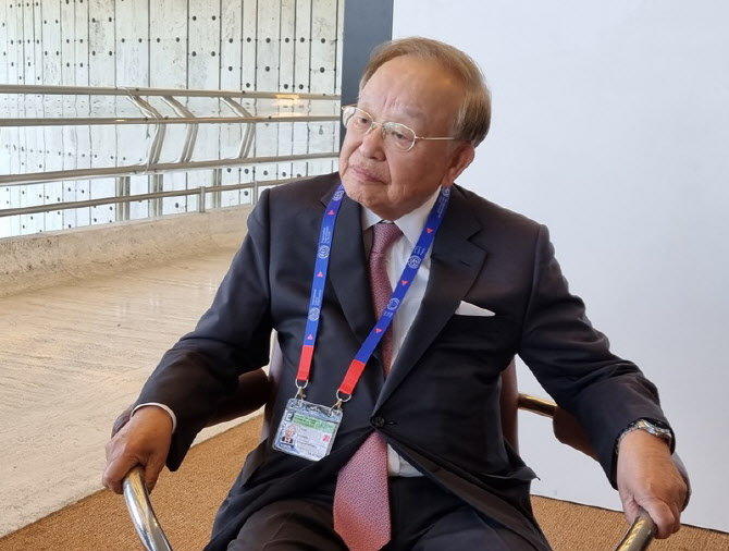 손경식 한국경영자총협회(경총) 회장이 11일 스위스 제네바 국제노동기구에서 고용노동부 기자단과 인터뷰를 하고 있다.(사진=고용노동부 기자단) |