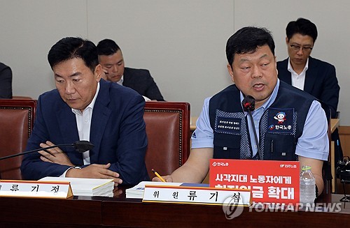 최저임금위, 발언하는 류기섭 한국노총 사무총장 |