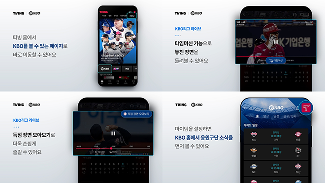 한편, 티빙은 보는 야구에서 ‘함께 노는 야구’로 프로야구에 디지털 재미를 더하고 있다. 티빙은 디지털상에 KBO리그의 영상을 개방해 티빙과 구단, KBO의 온라인 채널 등 다양한 창구에서 관련 영상을 볼 수 있도록 했다.
