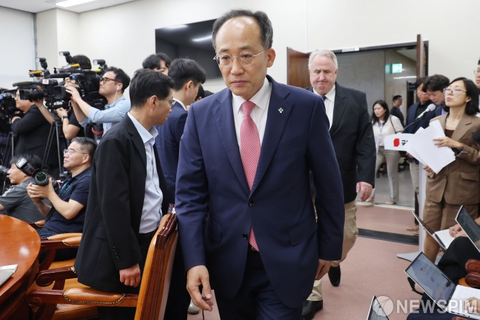 [서울=뉴스핌] 이형석 기자 = 추경호 국민의힘 원내대표가 17일 오후 서울 여의도 국회에서 열린 의료개혁특별위원회 당정회의에 참석하고 있다. 2024.06.17 leehs@newspim.com