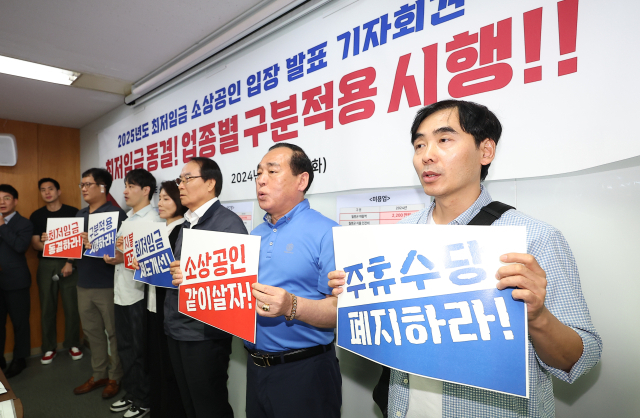 소상공인들이 내년도 최저임금 동결과 업종별 구분 적용, 주휴 수당 폐지를 정부에 촉구했다.