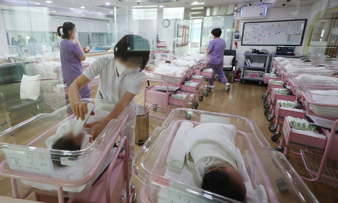 서울 시내 한 산후조리원 신생아실에서 간호사 등 관계자들이 신생아들을 돌보고 있다. 연합뉴스 |
