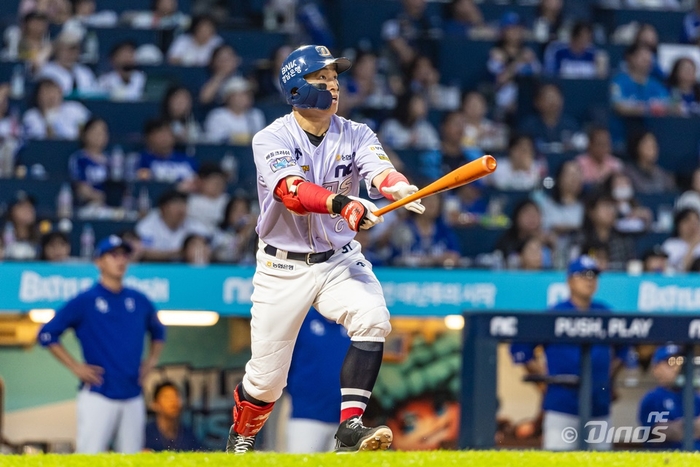 손아섭이 15일 창원 삼성전에서 7회말 추격의 솔로 홈런을 터뜨리며 KBO리그 역대 두 번째 2500안타를 완성했다. 사진 | NC 다이노스 |
