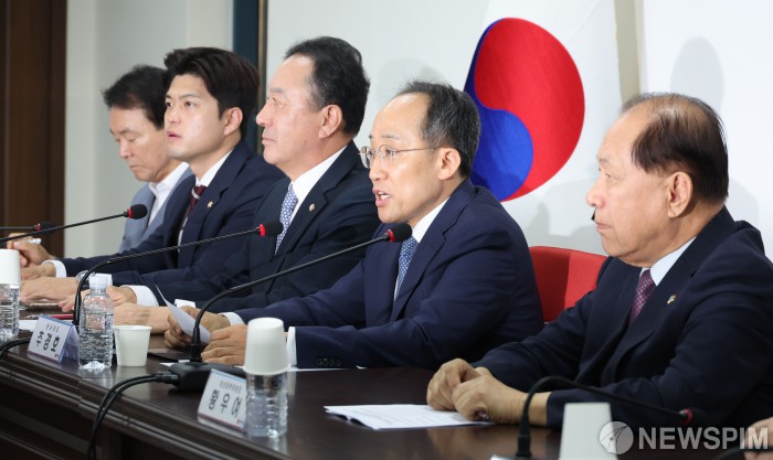 [서울=뉴스핌] 이형석 기자 = 추경호 국민의힘 원내대표가 20일 오전 서울 여의도 당사에서 열린 비상대책위원회의에서 모두발언을 하고 있다. 2024.06.20 leehs@newspim.com