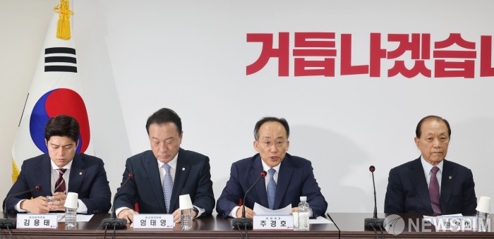 [서울=뉴스핌] 이형석 기자 = 추경호 국민의힘 원내대표가 20일 오전 서울 여의도 당사에서 열린 비상대책위원회의에서 모두발언을 하고 있다. 2024.06.20 leehs@newspim.com